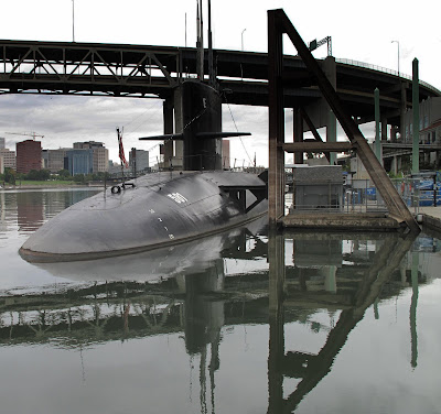 We buy tickets for the exhibits, a tour of the USS Blueback submarine, and an Omnimax showing of” Big Waves Tahiti”. Fred picked the tour (submarine) and I picked the movie (Tahiti). We both enjoy our selections. The USS Blueback was built in World War II and was one of the first fish-shaped submarines. It was one of the last diesel-electric submarines and was decommissioned in 1990.