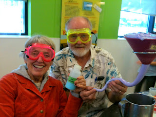 Back to OSMI to visit some of the other exhibits. We particularly enjoy the Chemistry Lab and the Physics Lab. We make wine glasses filled with colored water sing. We create bright colored flames from chloride. We become mad scientists.