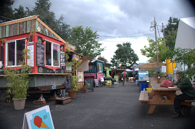 Only a few carts are active in this pod today and we share a beer brat at NUSHA’S cart. It’s just ok and we don’t finish it. We are looking for the true mouth watering food cart experience that we have come to love and adore.